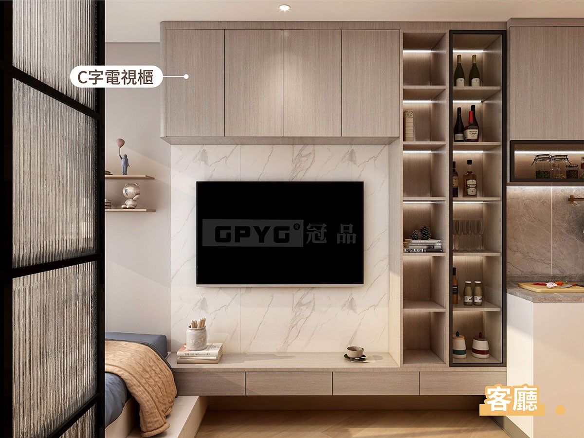 電視櫃C字型,增添左好多氛圍感✨。展示櫃透而不亂💗。