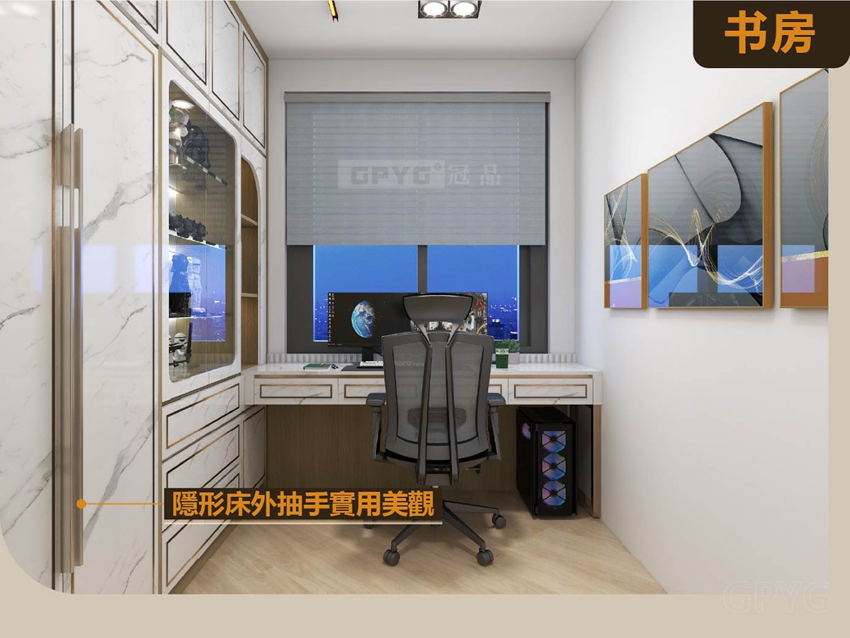 🥰溫書或者工作都夠嗮位啊!設計簡潔大方,趟門、櫃體統一金屬邊框點綴✨。下翻床立即做睡房,方便隨時收起,空間利用率100%!👍👍👍