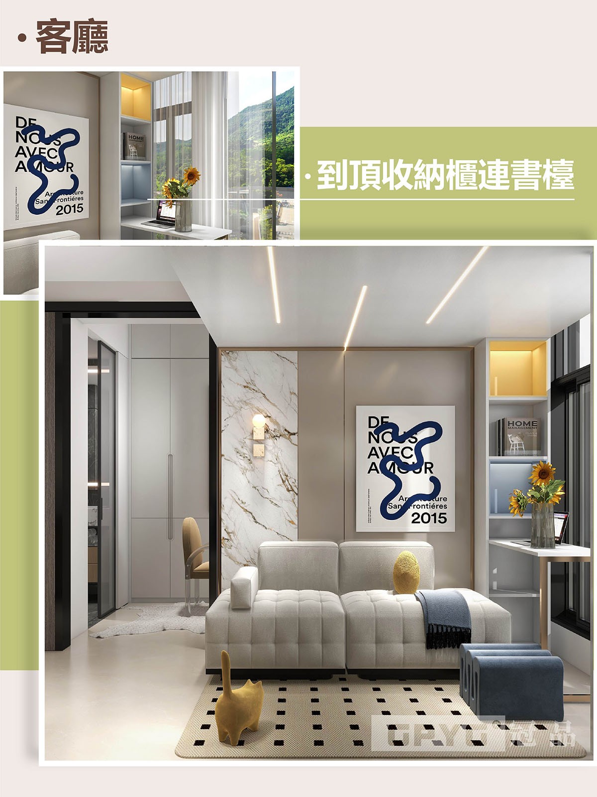 客廳輕松打造閣樓,休息或收納都可以😍。多個嵌入式儲物,增添生活便利感💯。