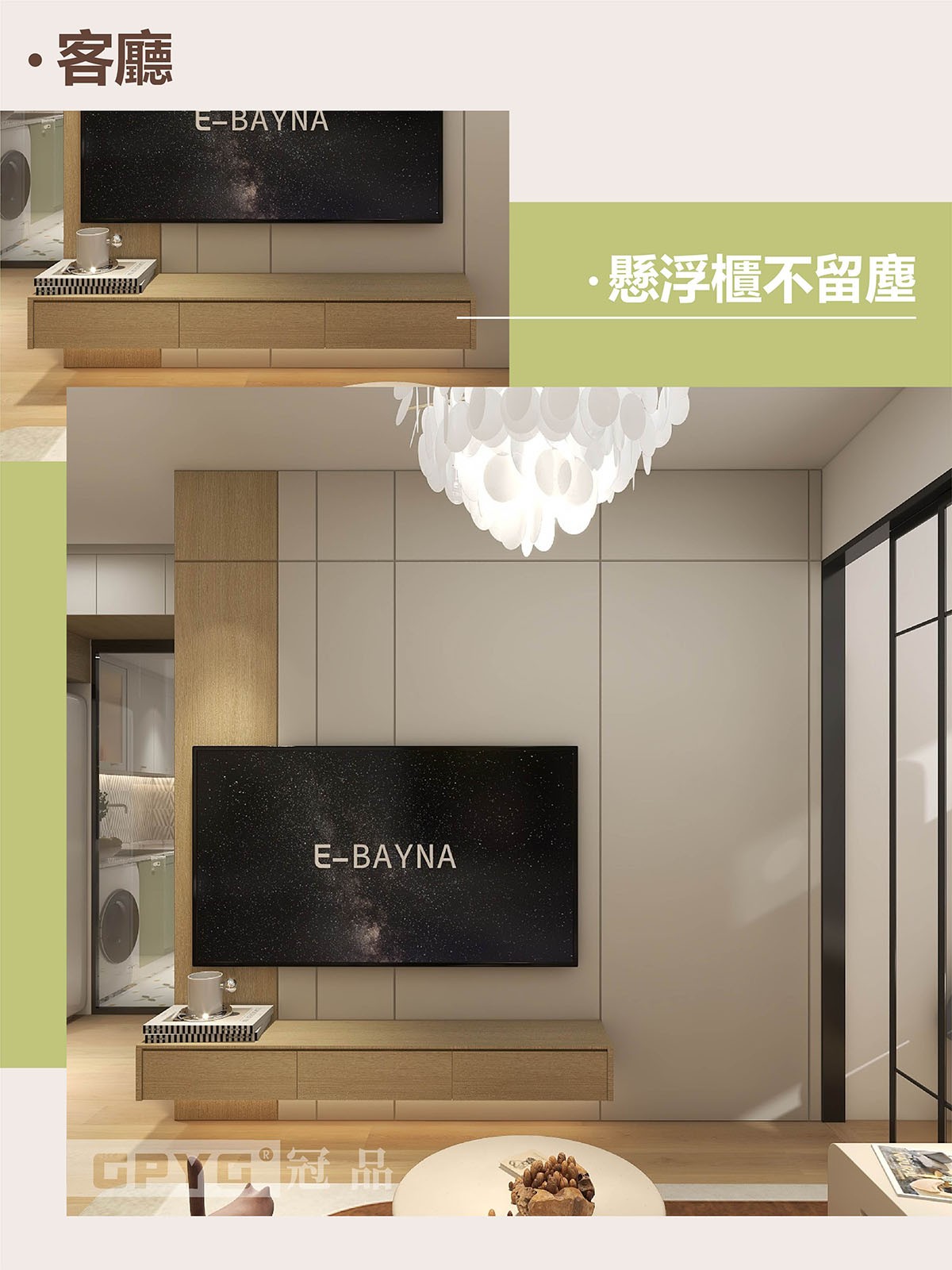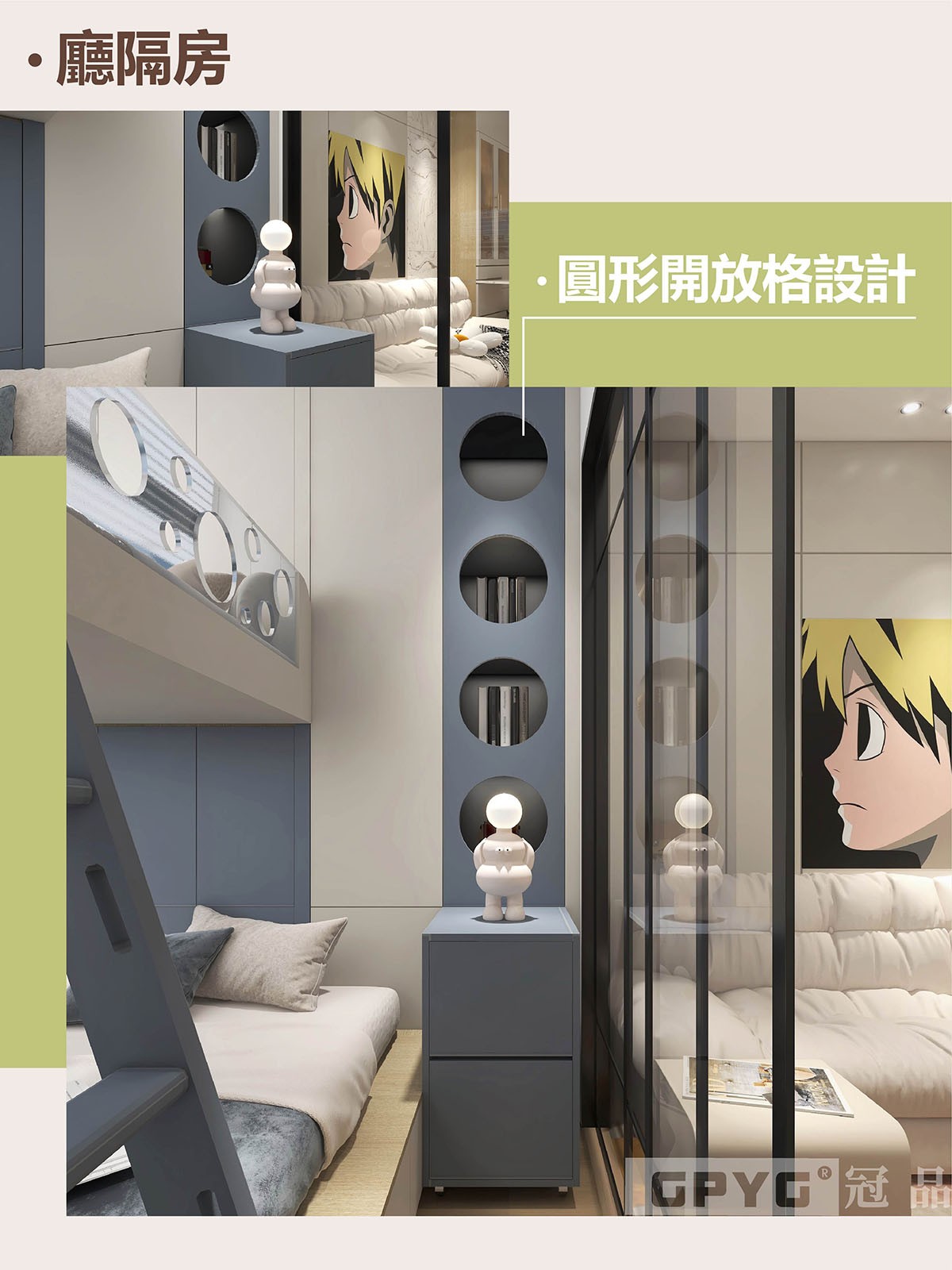 將有限空間最大發揮,客廳採用玻璃隔房🤩😆,通透明亮☀️;藍白嘅清新配色,清新舒適💙,高顏值收納空間一觸既有🥳!