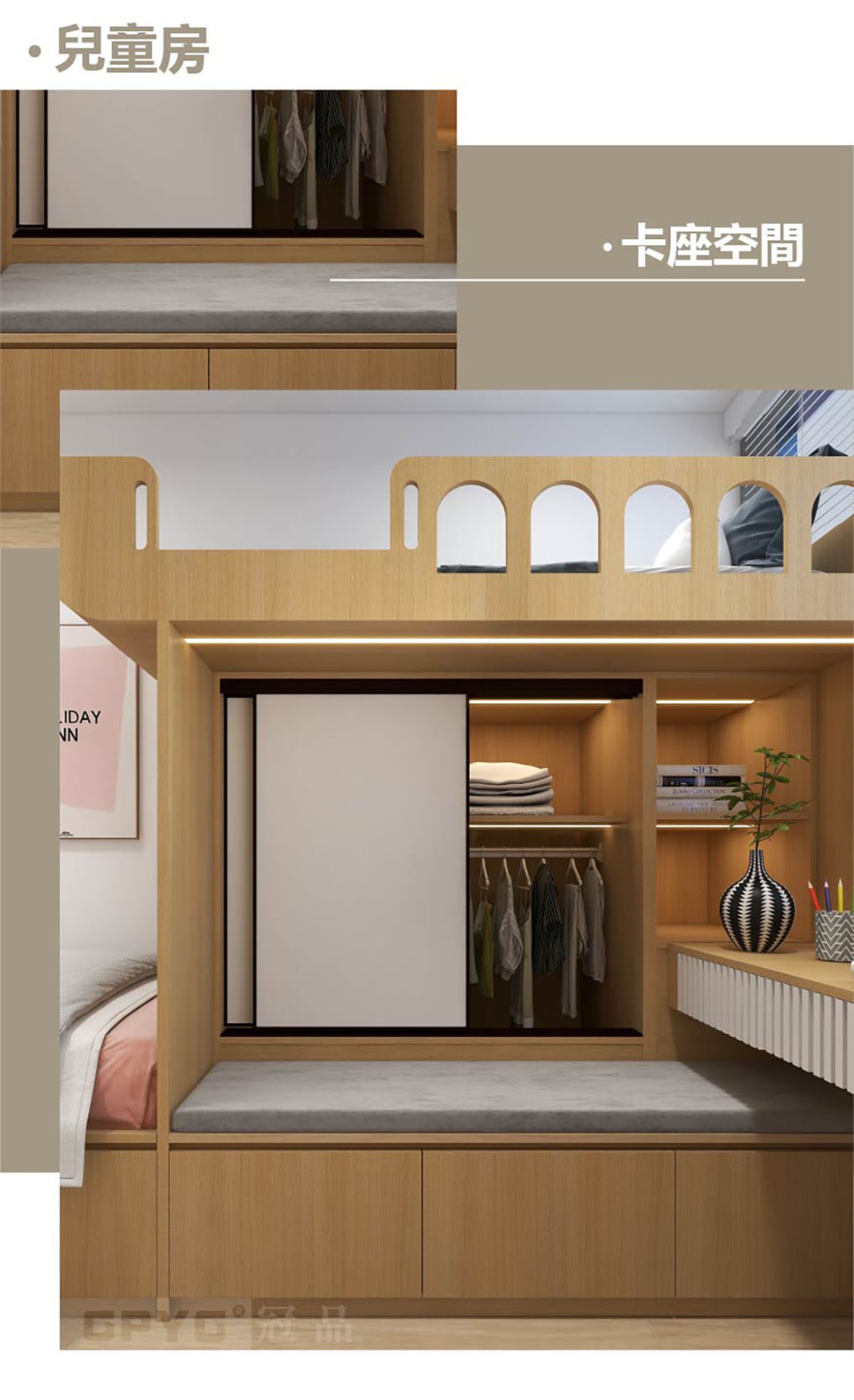 ☺️L型書檯上下格都可以放野,洞洞板隨時整理所需物品,上床弧形設計好骨致啊😍,有卡座,仲有兩處衣櫃可收納啊 !👭屋企有兩個小朋友都可以考慮甘做!👏😘