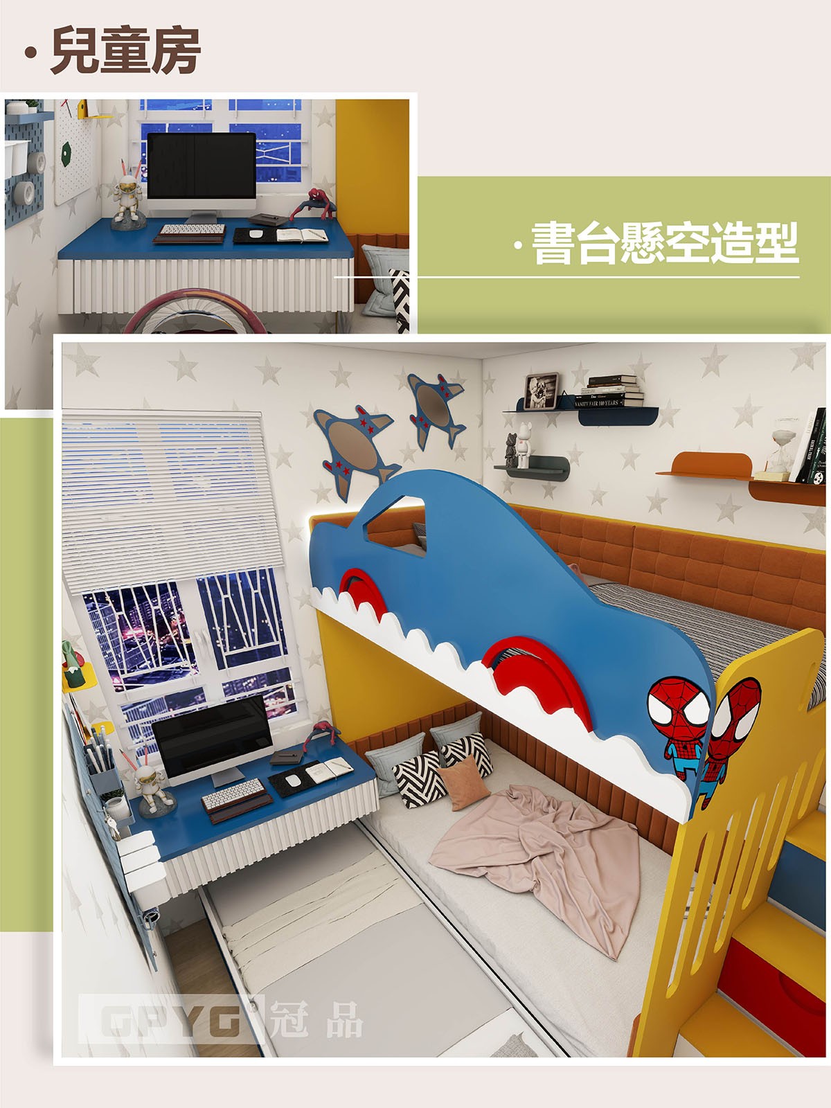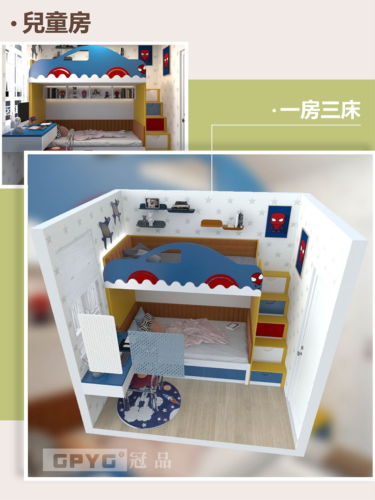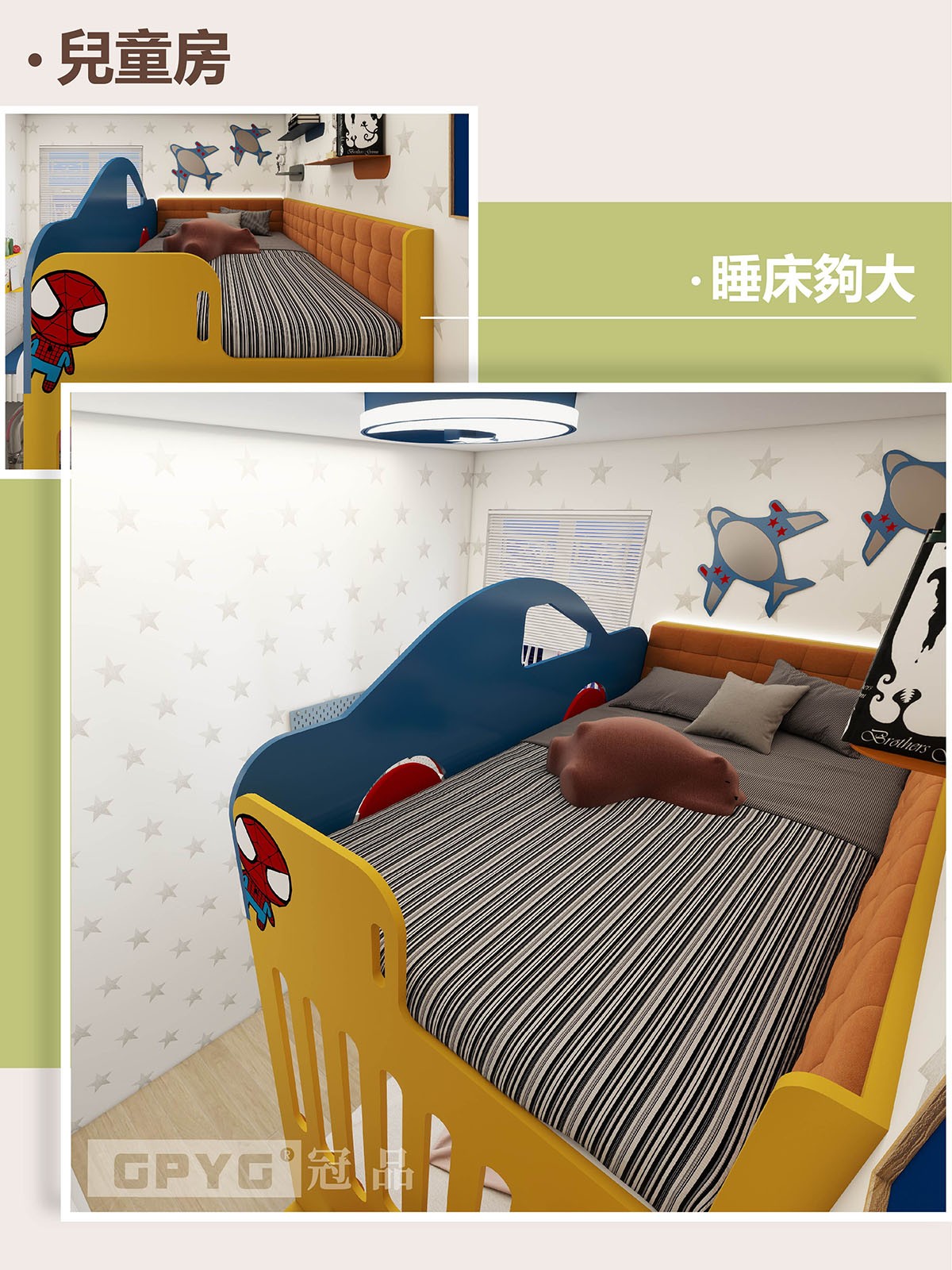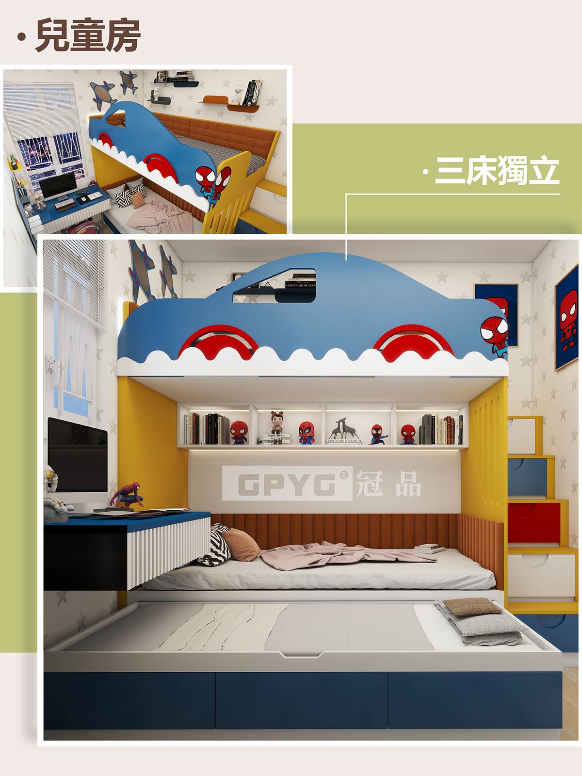 🎈主題式睡房,趣味十足。家私選用優質材料,結合精湛工藝✨,可容納三張獨立床位。😏不僅節省空間,👧👦更讓兄弟姊妹共享成長樂趣🥰。親密無間,共度美好時光。