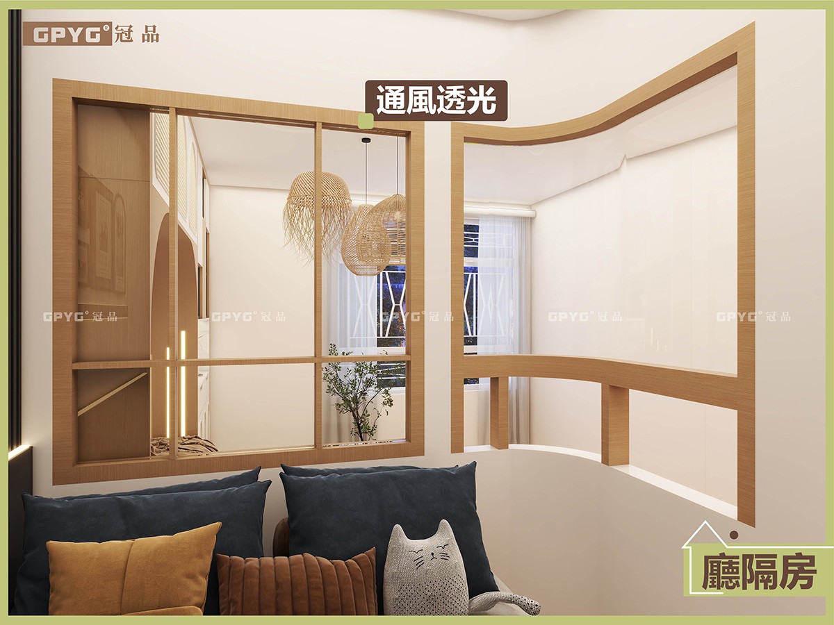通風透光:隔牆用木框玻璃設計,光線透入嚟,空間唔會焗促,通風又明亮。