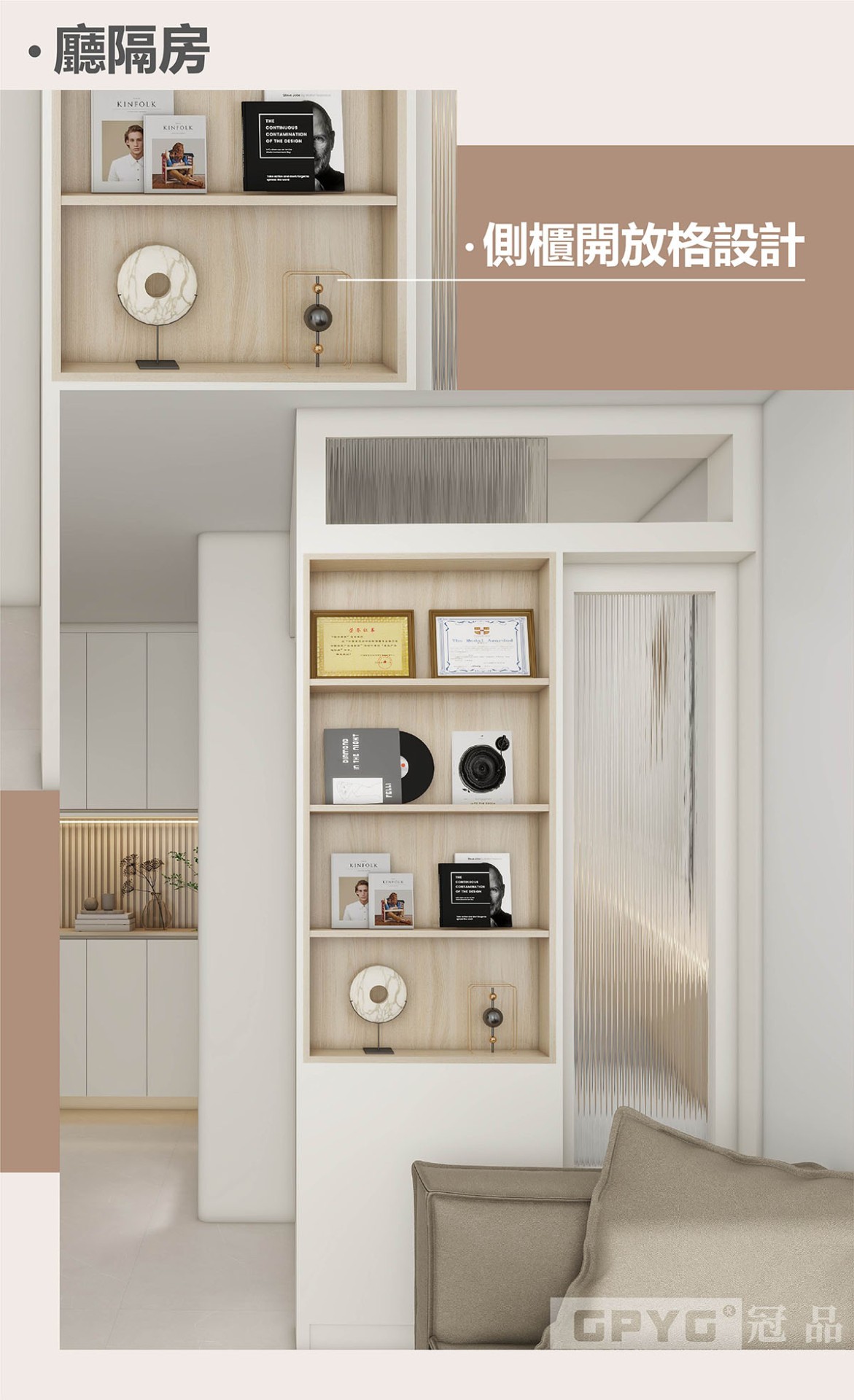 👀想係客廳間隔出一間房又唔會遮光,可以參考尼款設計💡,L型、趟門夠嗮慳位置啊!側櫃仲可以做嵌入式開放格,真正做到一櫃多用!😍😘