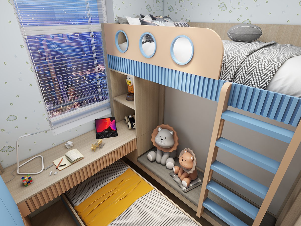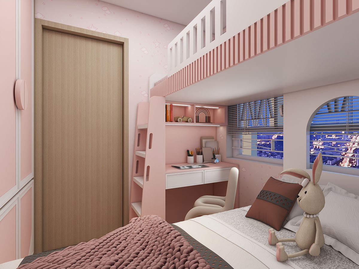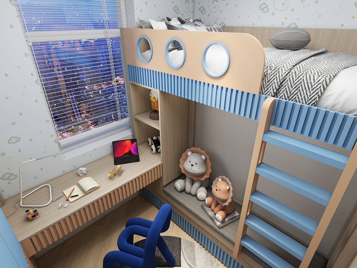 👉客廳攞位,隱形房門夠慳位。貼合戶型將實用嘅空間全部都利用!📦櫃連床/書枱連床,錯開床位嘅設計令空間開揚好多~