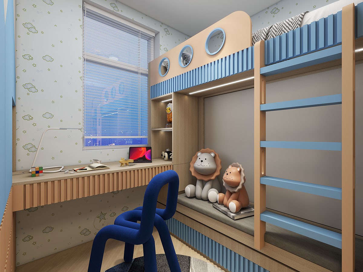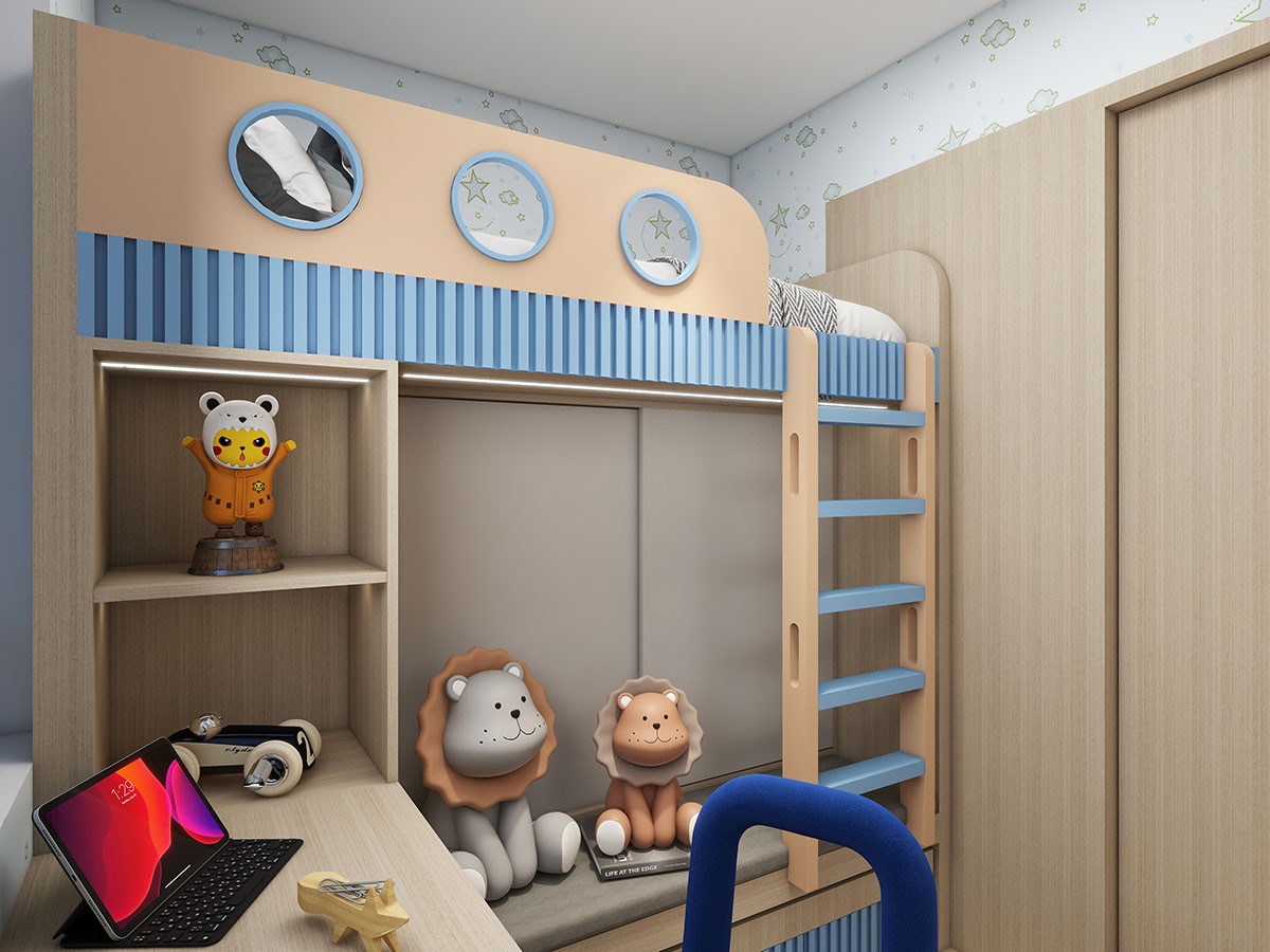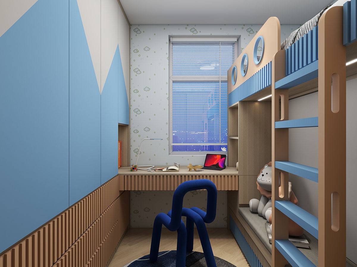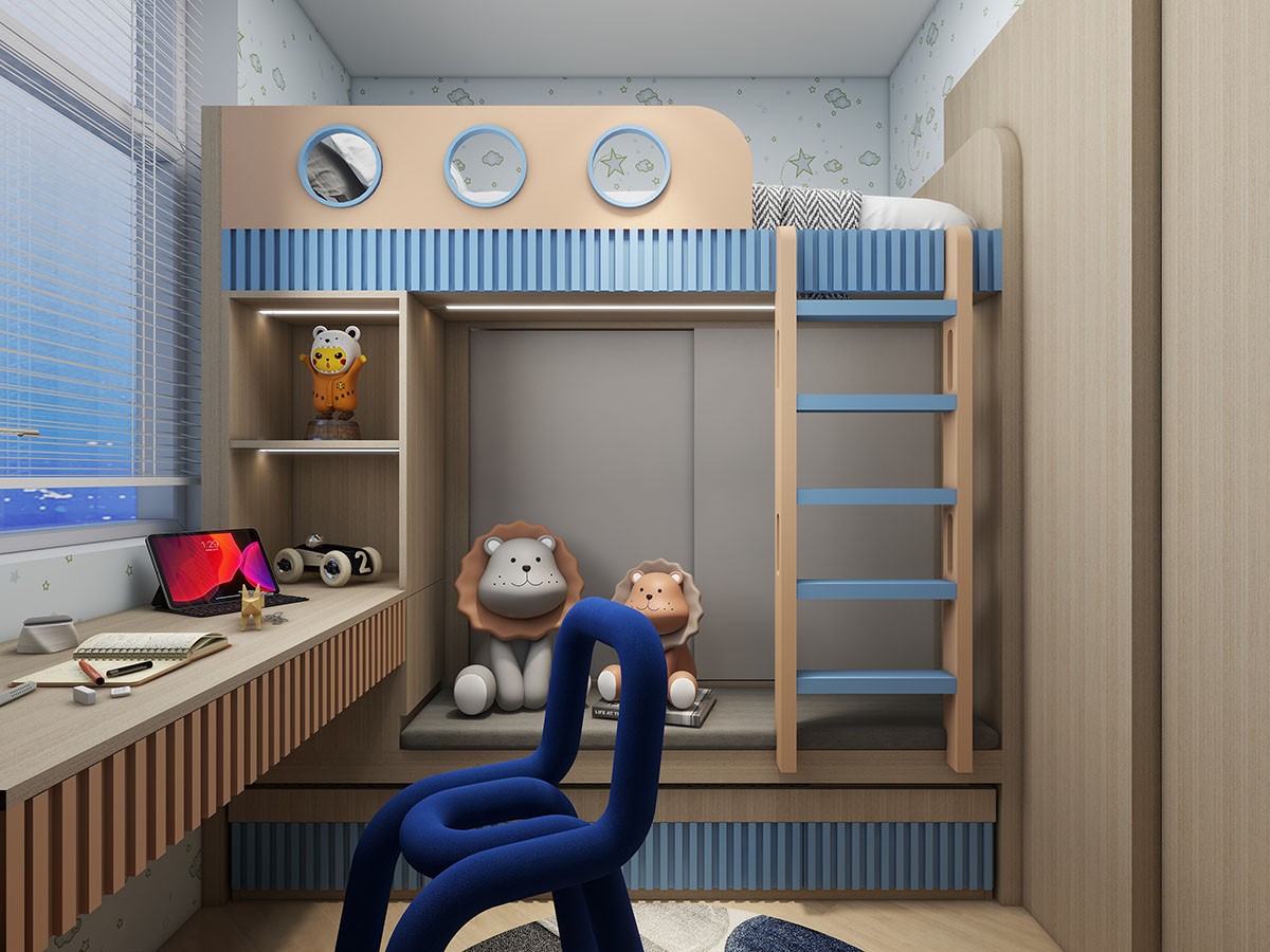 👉客廳攞位,隱形房門夠慳位。貼合戶型將實用嘅空間全部都利用!📦櫃連床/書枱連床,錯開床位嘅設計令空間開揚好多~