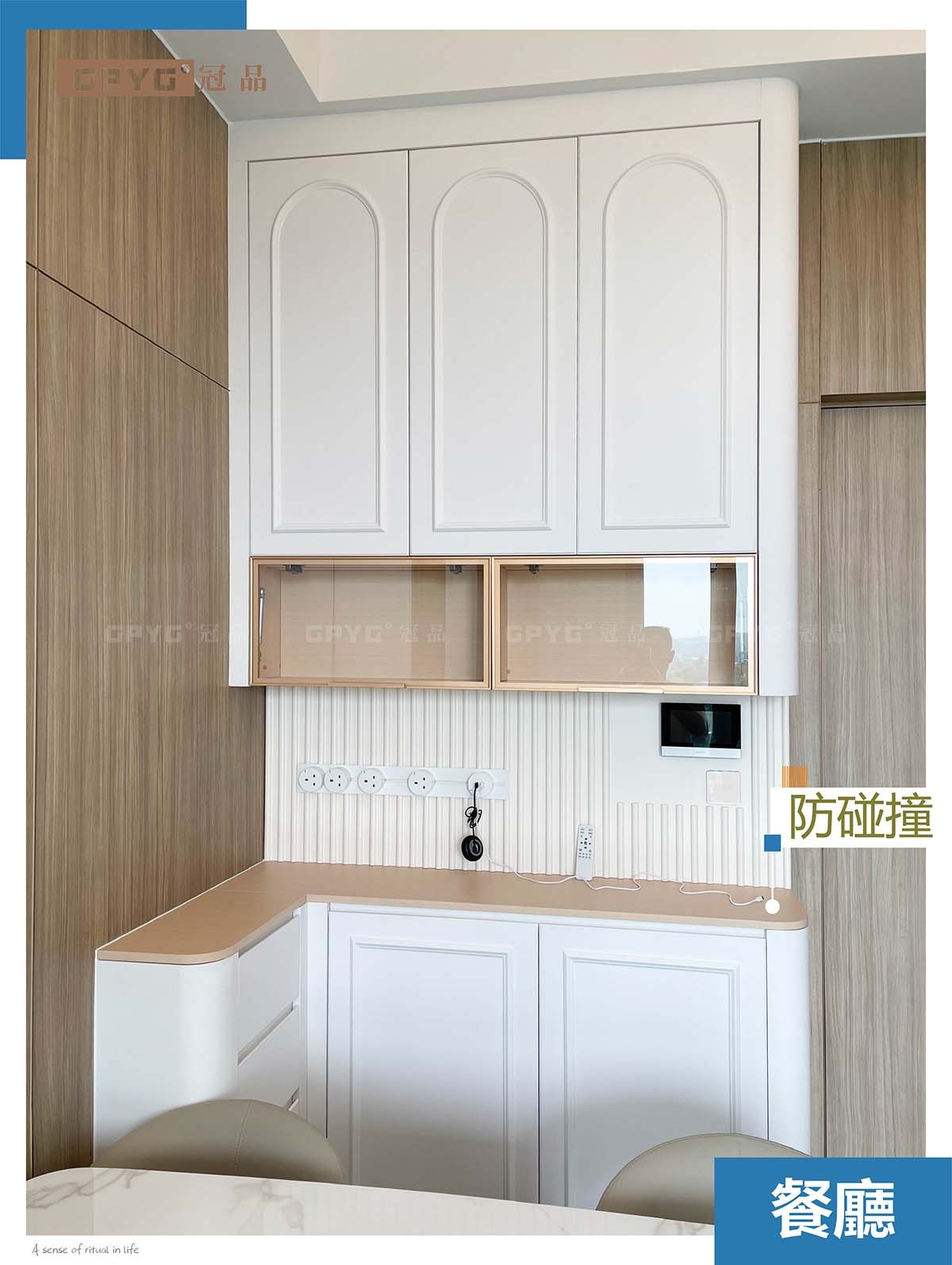 在冠品宅配的設計邏輯中,圓弧不僅是形態語言,更是情感載體。通過圓弧轉角弱化櫃體體量感,讓狹小空間呈現呼吸感;兒童房的圓弧上下床護欄,以溫潤曲線傳遞安全感。這種以形載情的設計理念,使圓弧工藝從單純的技術手段升華為生活方式的表達。正如其品牌主張所述:圓弧不是對直角的否定,而是讓空間在理性秩序中流淌感性溫度。
