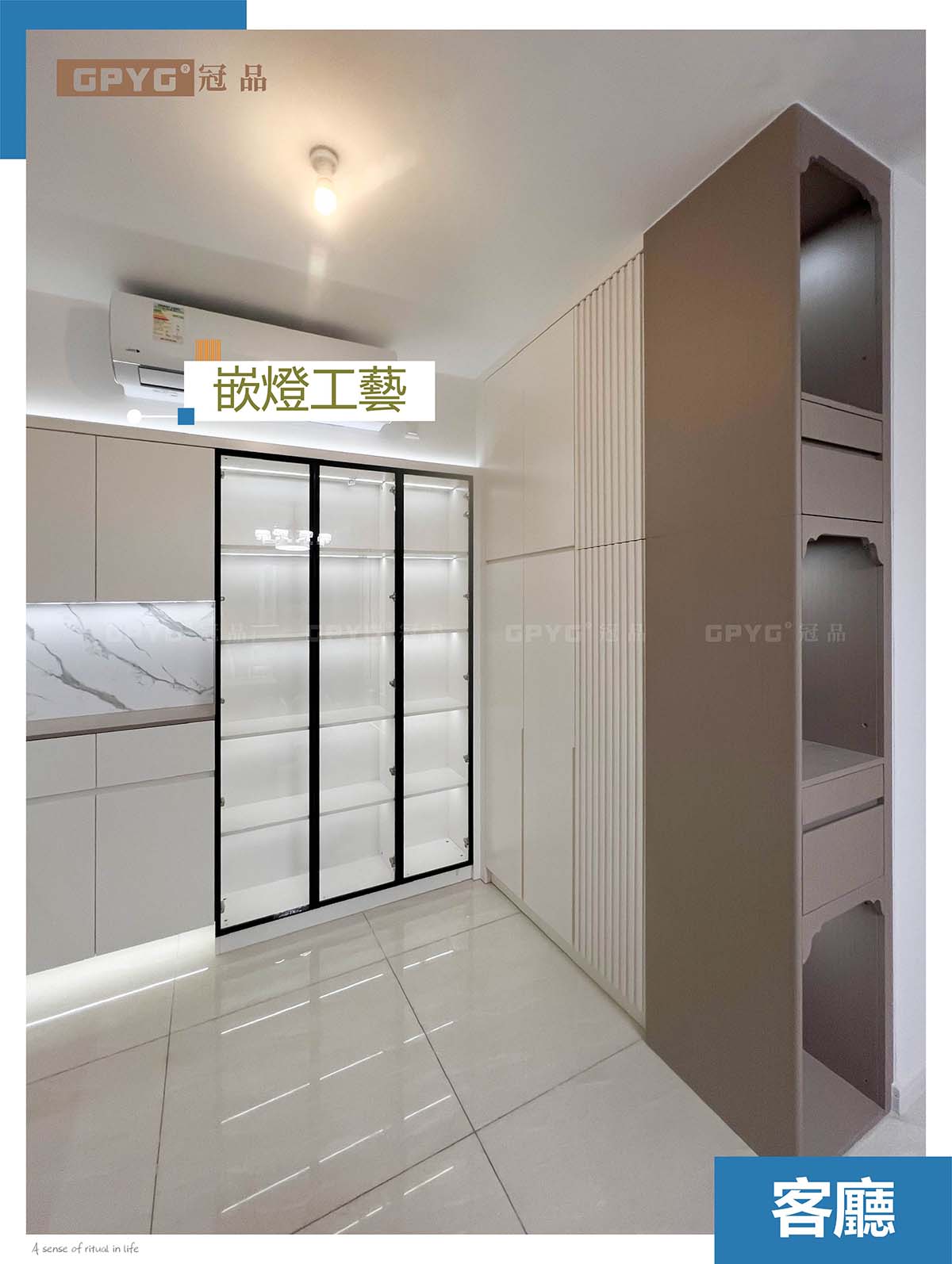嵌燈工藝加分! 櫃體暗藏燈帶,夜晚開燈唔單止慳電,仲營造出自帶氛圍嘅「展示櫃效果」,擺啲心頭好上去,隨時變成客廳打卡位!