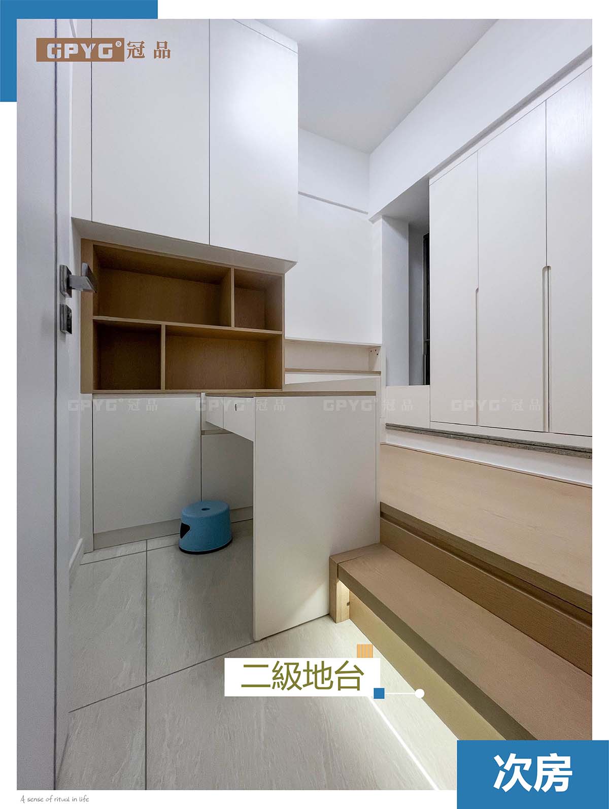 冠品呢套設計,完全捉緊「空間細、需求多」痛點:懸浮電視櫃 搞惦客廳顏值+基礎收納,懸浮組合櫃 將牆面變超級收納牆,二級地台床 直接讓睡房「空間翻倍」。