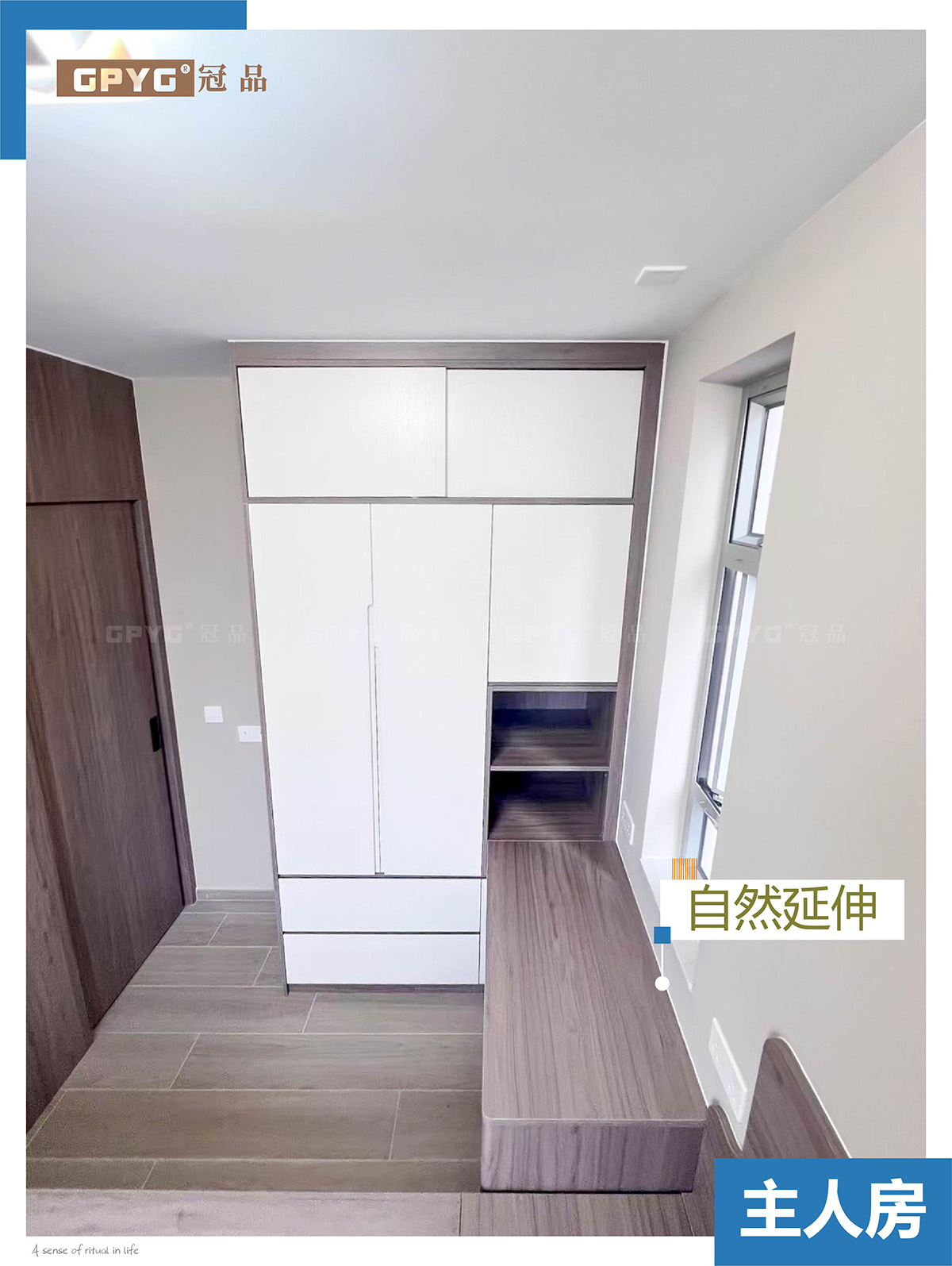 床邊櫃同衣櫃連成一體,貼牆設計,唔浪費一寸空間。衣櫃有上下層,上層收納過季衣物,下層掛衫同櫃桶收納褲子。床頭仲有書桌連接,一邊瞓覺一邊做嘢,空間完全利用。細戶型最怕雜物多,床櫃一體將床邊空間變收納區,連床底都可以做抽屜,連蚊帳都唔使掛,慳位又整齊,瞓覺都舒服啲!