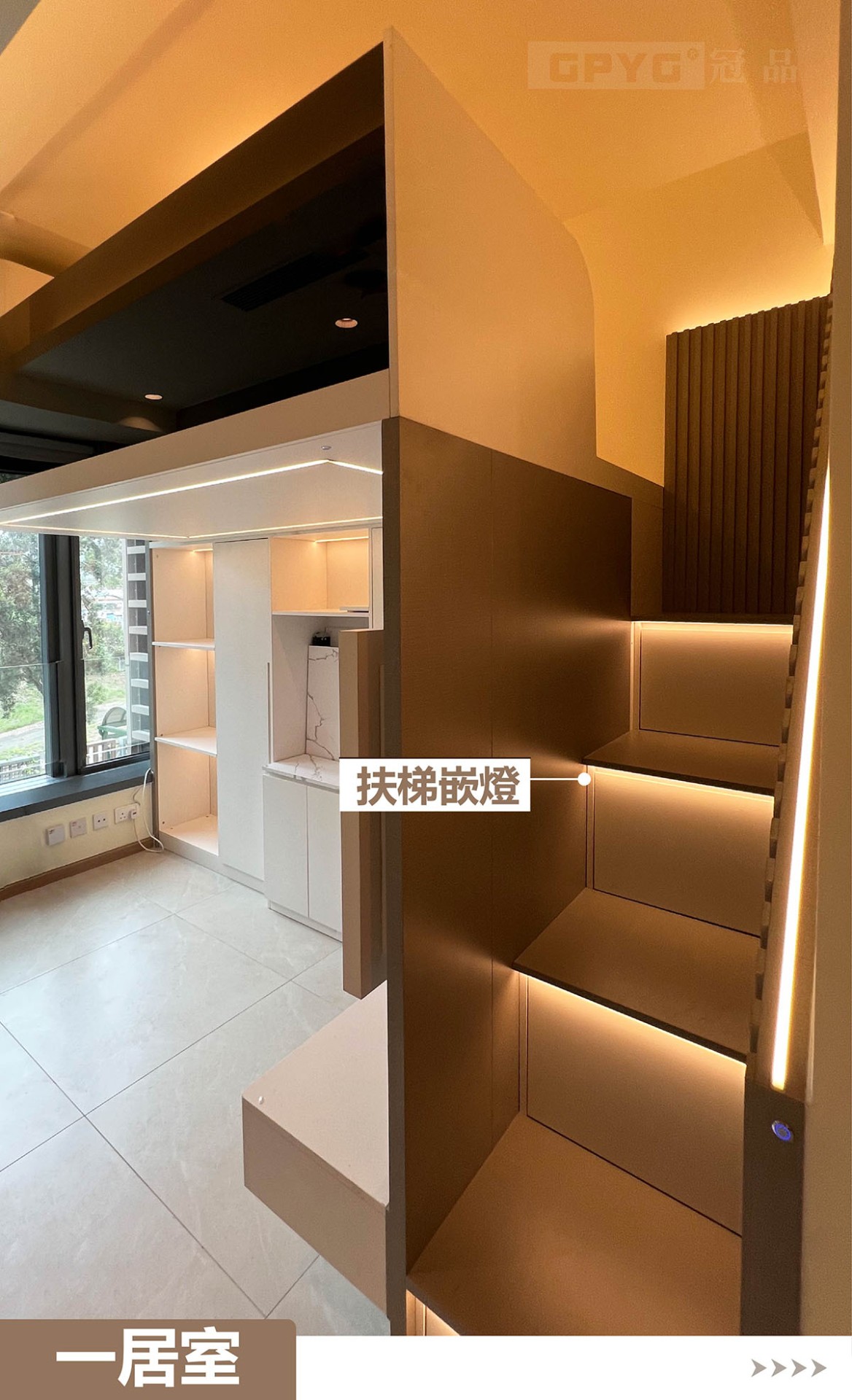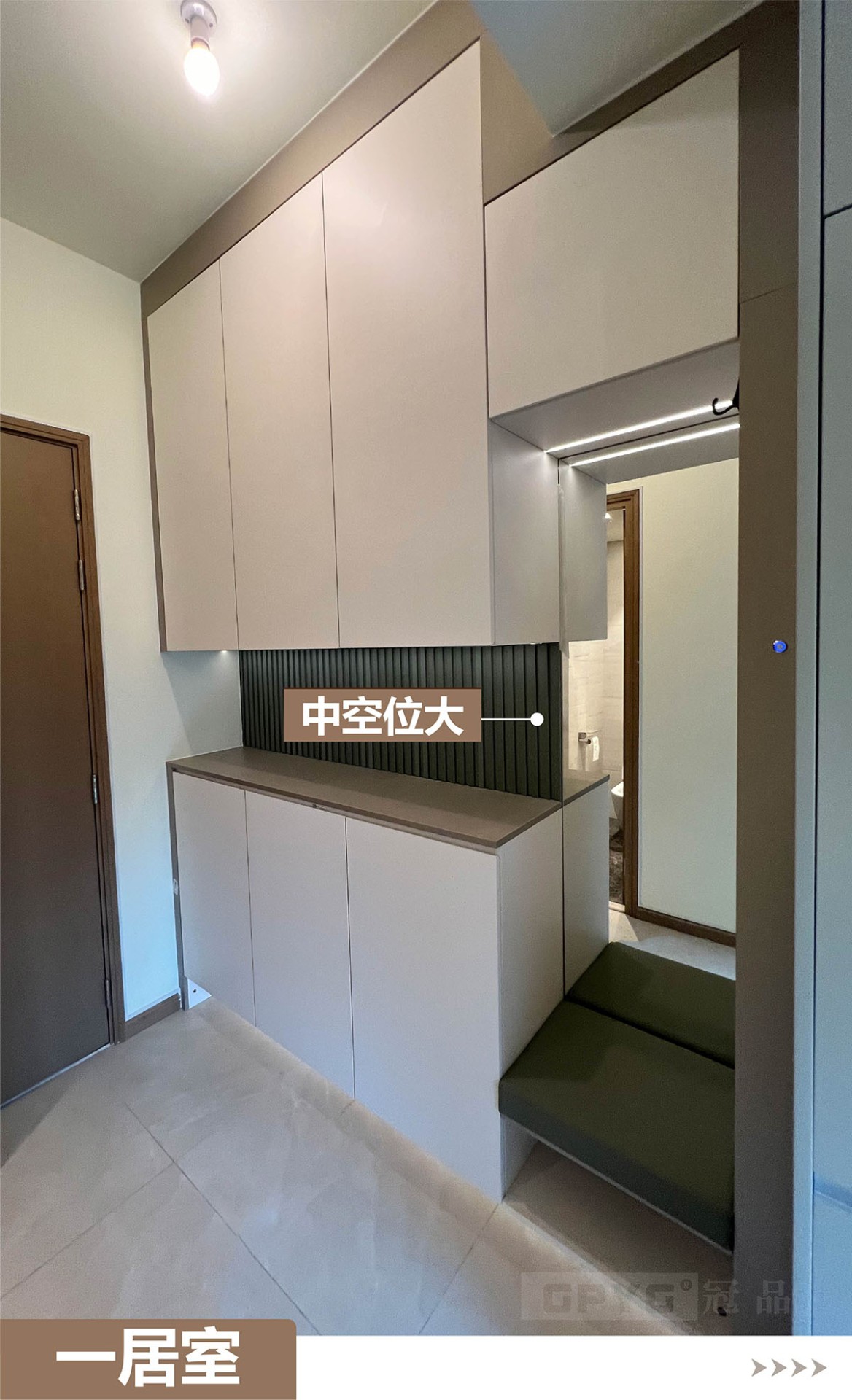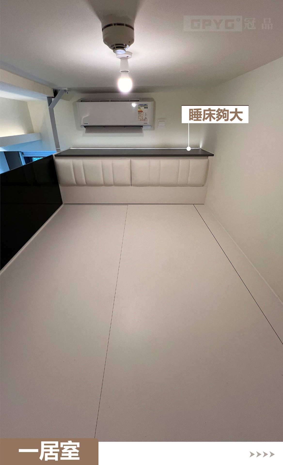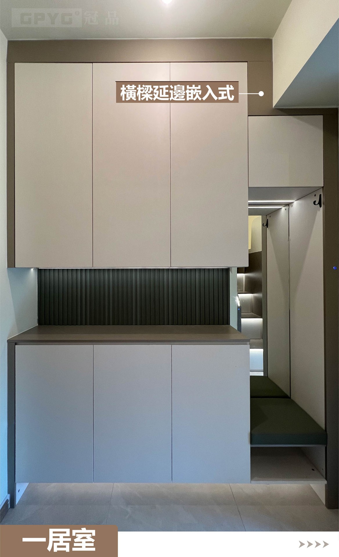 👉通常一居室嘅玄關到頂就比較重要,視覺拉闊👀,又可以儲物!客廳打造睡床,可以訓落兩人👭。上下空間分開!櫃體嵌燈顯床, 引路方便!😘