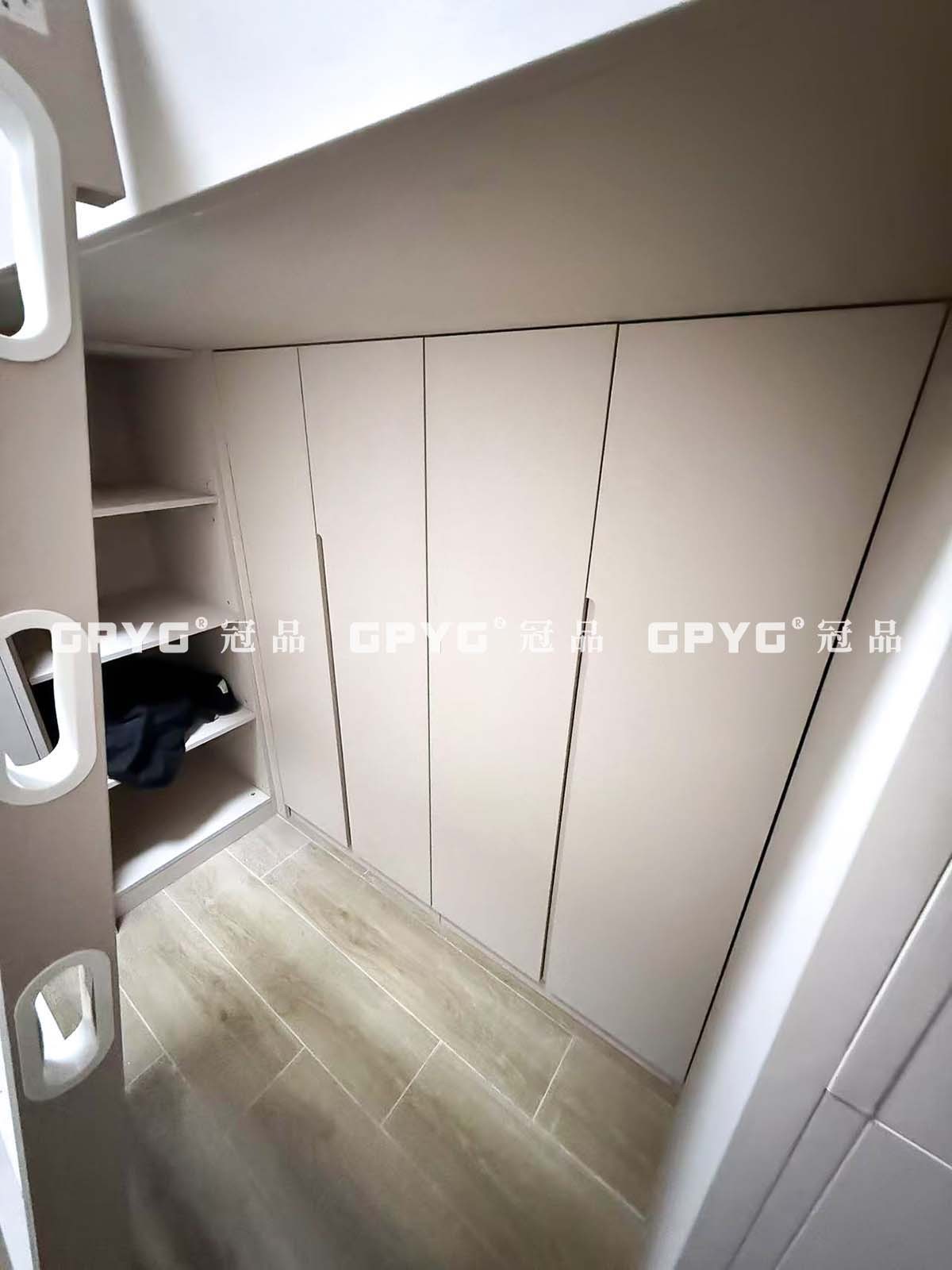 床鋪被巧妙設置在上方區域,下方則打造為大容量儲物櫃。這種設計將原本單一的臥鋪空間,拓展出雙重功能。對於衣物收納,儲物櫃內可根據需求劃分為掛衣區、疊放區,無論是長款大衣,還是折疊整齊的襯衫、褲裝,都能各得其所;面對雜物收納,諸如行李箱、季節性被褥等體積較大的物品,也能輕鬆容納其中。