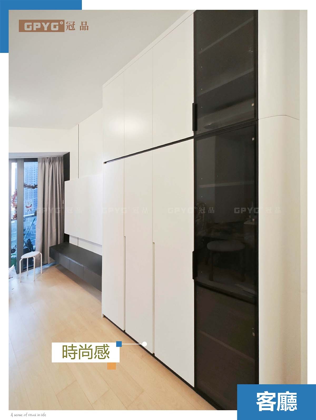 客廳嘅一體化電視櫃絕對係亮點!呢個設計將電視櫃同儲物櫃融為一體,外觀整齊又大氣。白色櫃身配黑色玻璃門,增加咗時尚感,客廳即刻提升格調。一體化設計唔單止美觀,儲物空間亦好強大,可以收納好多雜物,令客廳保持整潔。無論睇電視定係招呼客人,呢個電視櫃都會成為焦點!