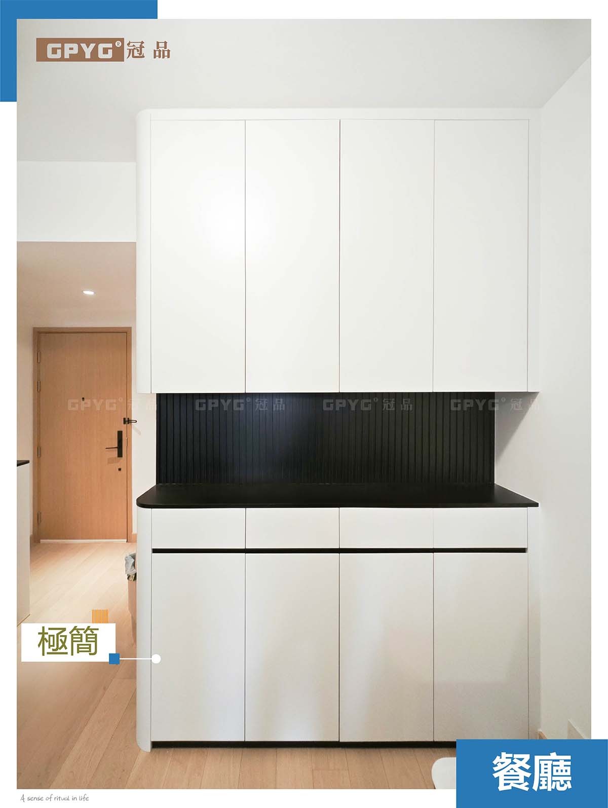 餐廳嘅餐邊櫃以「極簡」為主題,白色櫃身配黑色背板,簡潔得嚟又有層次感。櫃體設計有多個儲物格,無論餐具定係食材都有位放。最貼心圓角設計,避免撞到,尤其適合有小朋友嘅家庭。呢個餐邊櫃擺喺餐廳,即刻令空間更整齊,用餐都更開心!