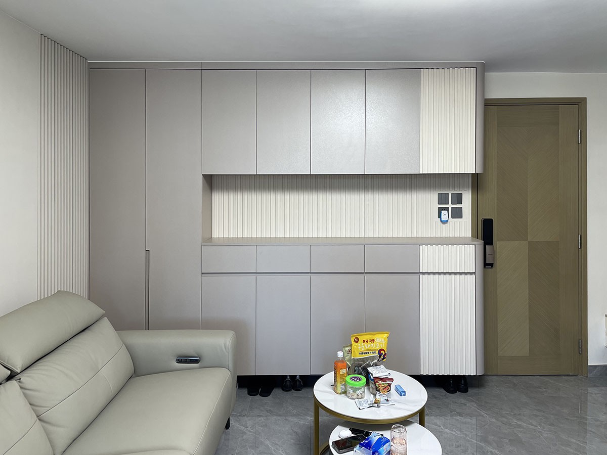 全屋設計亮點:符合對輕奢生活嘅追求,鋁合金框玻璃櫃展示嘅同時收納都滿足曬,整體空間通透明亮更顯高級感,厨房U字型櫥櫃吊櫃設計搭配唔同功能區,操作方便帶入更多生活樂趣。