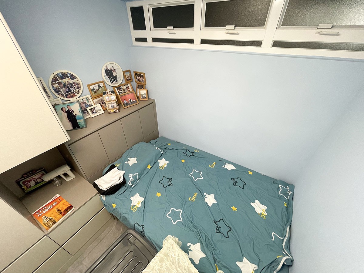 地台床延伸床頭收納櫃,c字型衣櫃中空位置方便攞嘢,空間合理規劃,收納力非常之強勁。