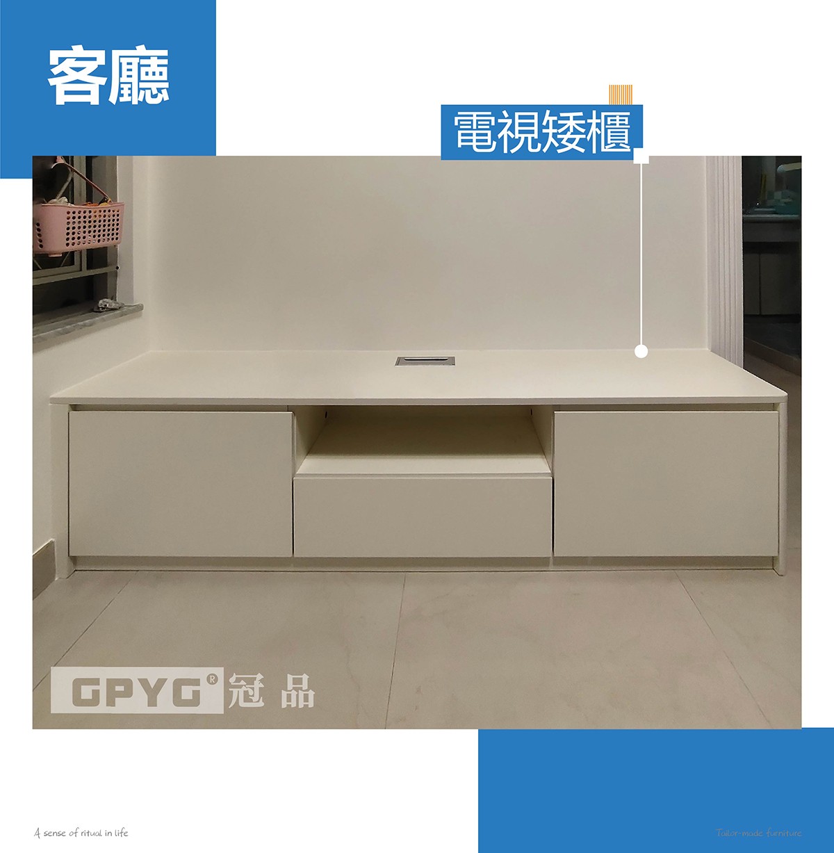 客廳:電視矮櫃簡單實用,收納遙控、雜物一流。