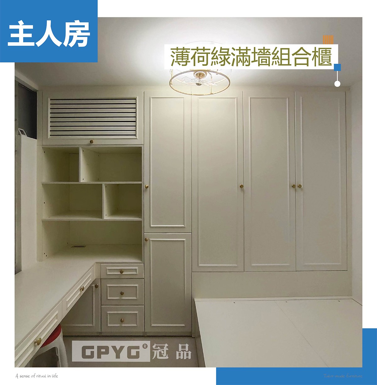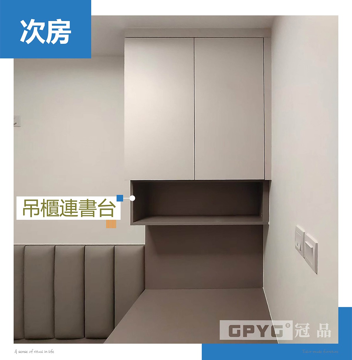 房間:主人房滿牆組合櫃,連埋書台,兒童房錯開式上下床,配爬梯儲物、床頭櫃,次房吊櫃連書台,空間用到盡。