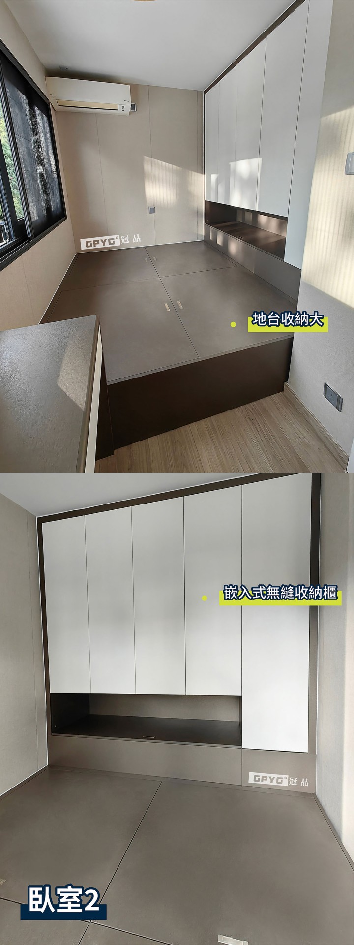 睡房帶又不規則線條嘅多功能地台收納,充滿層次感。多間睡房度身訂造,保持光線同各自隱私。而廚房大島台滿足備菜同餐台功能!全屋儲物空間同步升級⬆