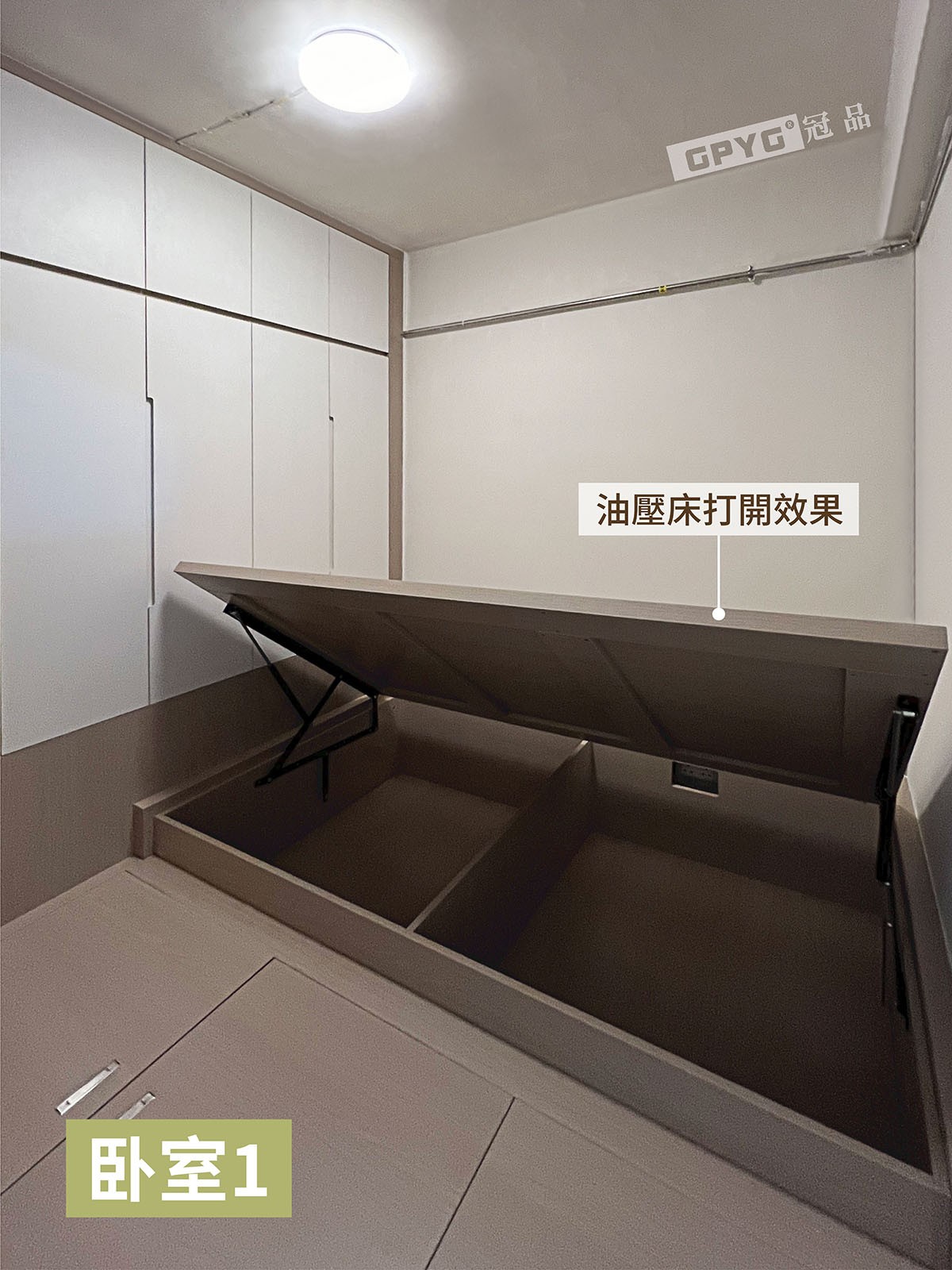 小戶型可參考系客廳間隔嘅方法,實現獨立空間又唔擠逼。採用油壓同地台設計,令收納夠曬大!
