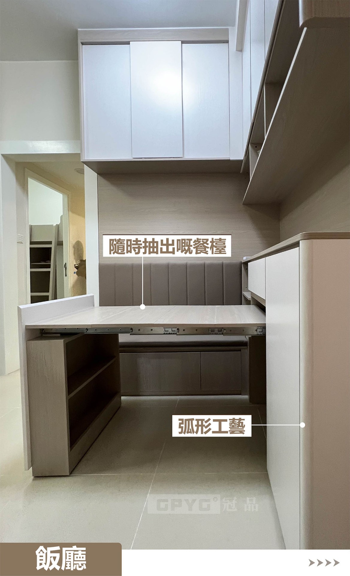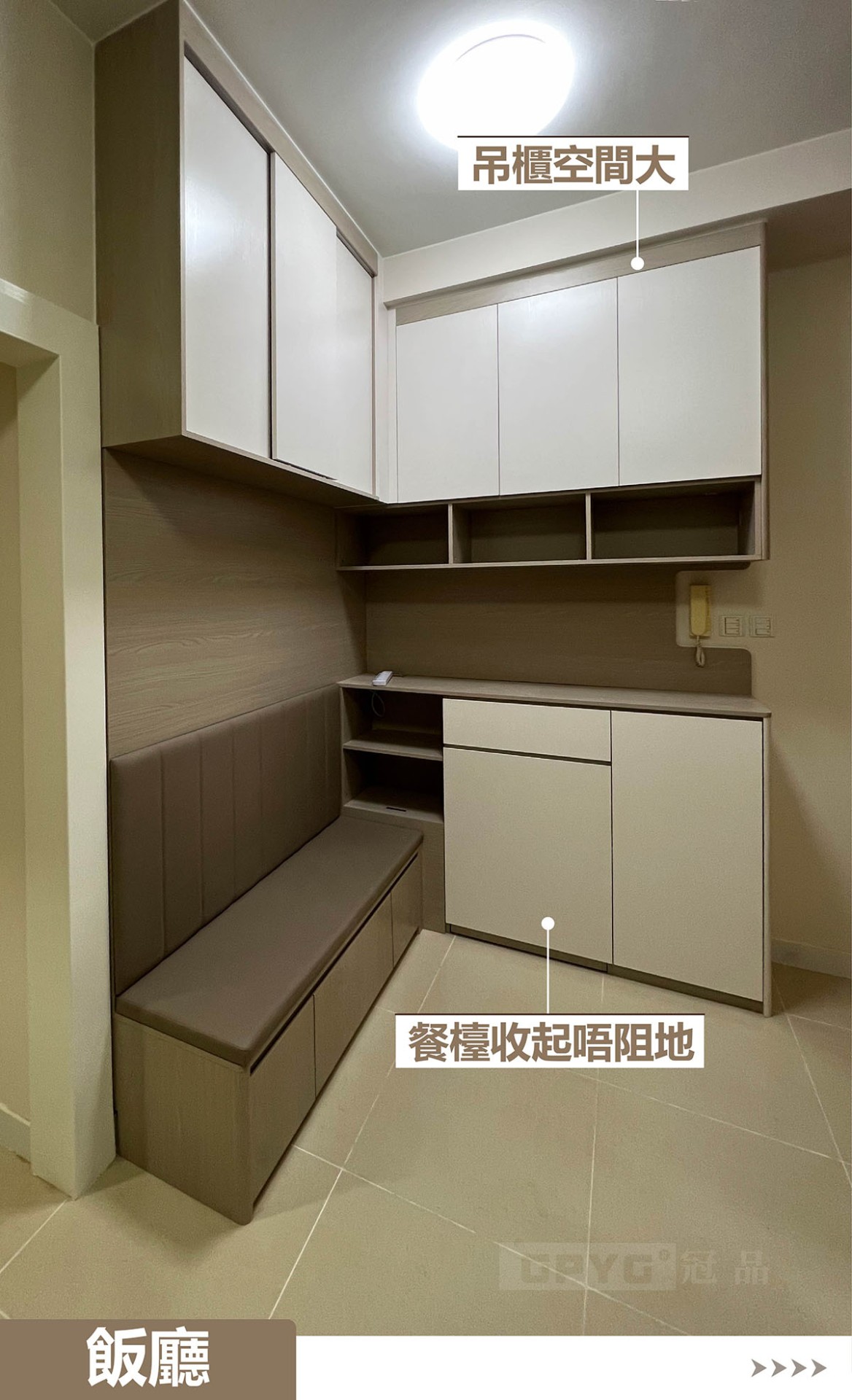 櫃體靠墻到頂嘅做法顯得成個空間大方簡潔!✨🥰其實大地色係嘅傢私最襟睇噶!每個區域都別具型格,🧐隨時抽出嘅餐檯🍽️,大面積嘅收納等等😎👏,同時亦留左唔少流動空間噶!😄